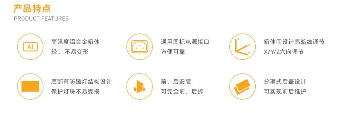 金立翔GF系列箱體,采用"X”元素和刀刃的鋒利完美結(jié)合,在不增加產(chǎn)品的厚度情況下打造超強(qiáng)視覺(jué)立體沖擊效果;金色V形裝飾和金色LOGO,提升了產(chǎn)品在色系上的層次感。采用鋁合金壓鑄成型工藝,軟連接拼接精度高;彈簧式緩沖的箱體把手,更具有人性化;隱藏式電源接插件,使得屏體無(wú)裸露線材,更美觀;箱體底部增加落地保護(hù)設(shè)計(jì),有效防止燈面磕碰。